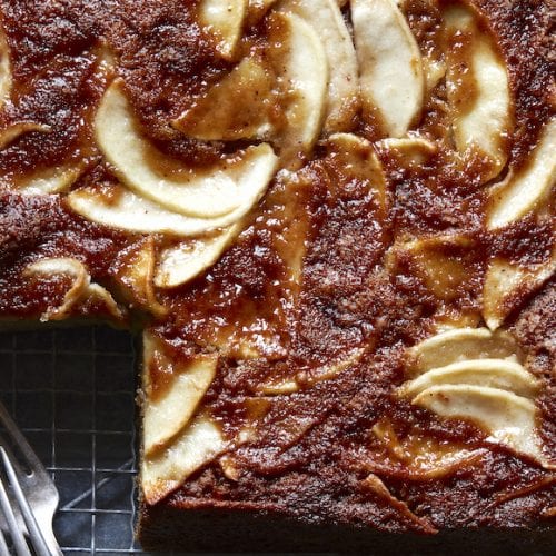 I love this cake! Itโs sweet enough to be dessert (esp w whipped cream or ice cream), but also perfect for breakfast or an afternoon treat with tea or coffee. Itโs easy to make and thereโs still a great texture and crunch to the apples. Sometimes I add turbinado sugar to the top for some extra crunch, but itโs perfect as is. I brought it into the office and a bunch of people asked for the recipe.