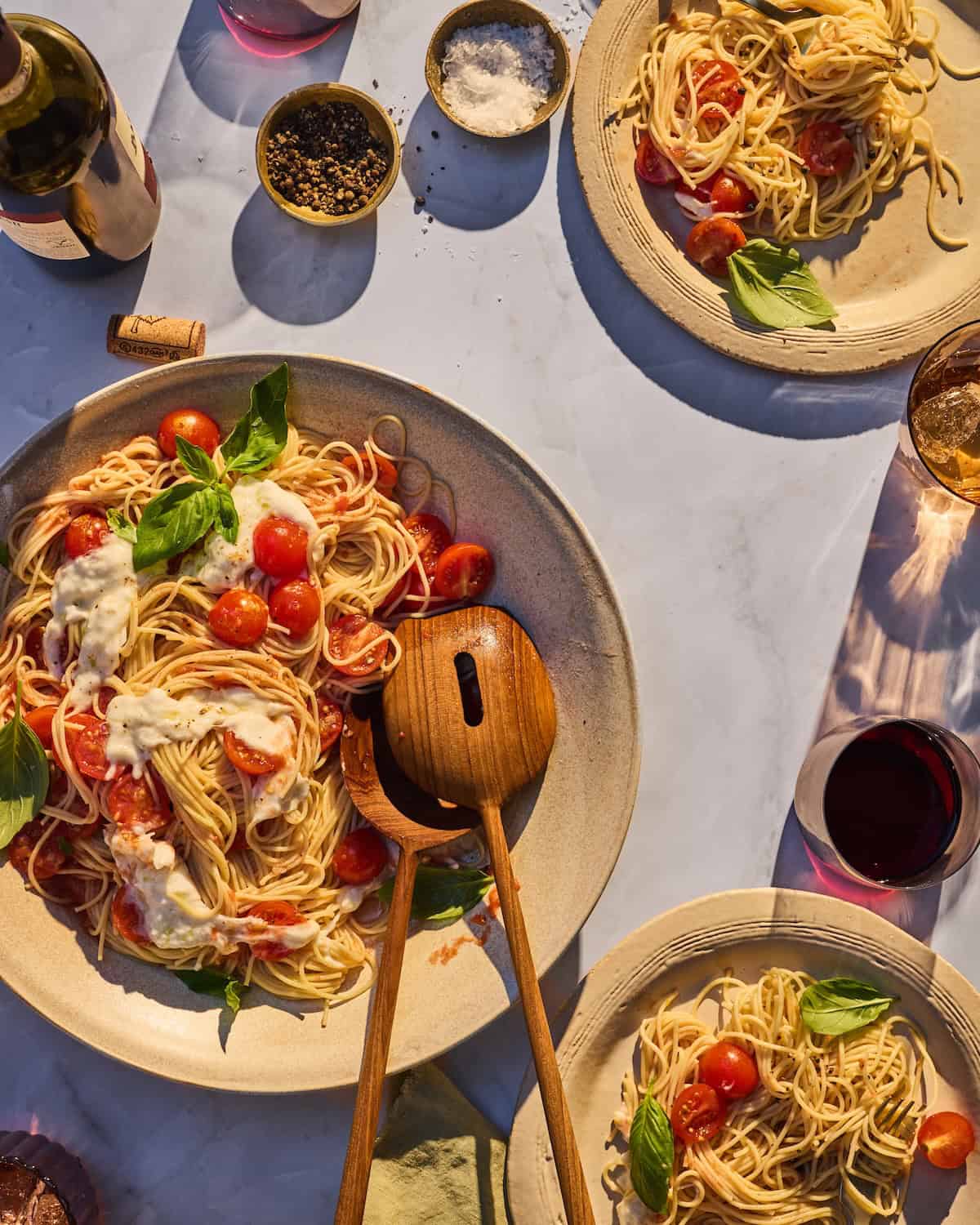 There's nothing I love more than absolutely winging it for an IG Live. And typically I turn whatever creation I made into a post here for WGC for easy reference but sometimes I forget and then wind up putting it up 2 years later. So to everyone who waited a full 2 years for this Caprese Pasta - I'm sorry. To everyone just discovering this PEAK summer recipe - get excited!