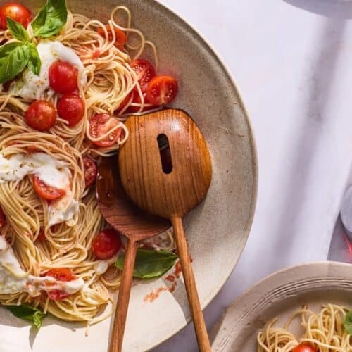 Caprese Pasta is basically summer in a bowl. The sauce is made from fresh heirloom tomatoes that get grated and tossed with hot pasta, which means zero stovetop simmering when it comes to the sauce and maximum flavor. Toss in a heap of basil, finish with creamy burrata, and dinner is done. Caprese Pasta is light, bright, and the kind of recipe you will find yourself craving all season long. I'm truly head over heels in love with this recipe!