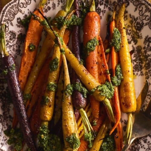 The charred carrots can be stored in the fridge for 3-4 days in an airtight container. I recommend storing the basil mint topping separately in a container for about 2-3 days.