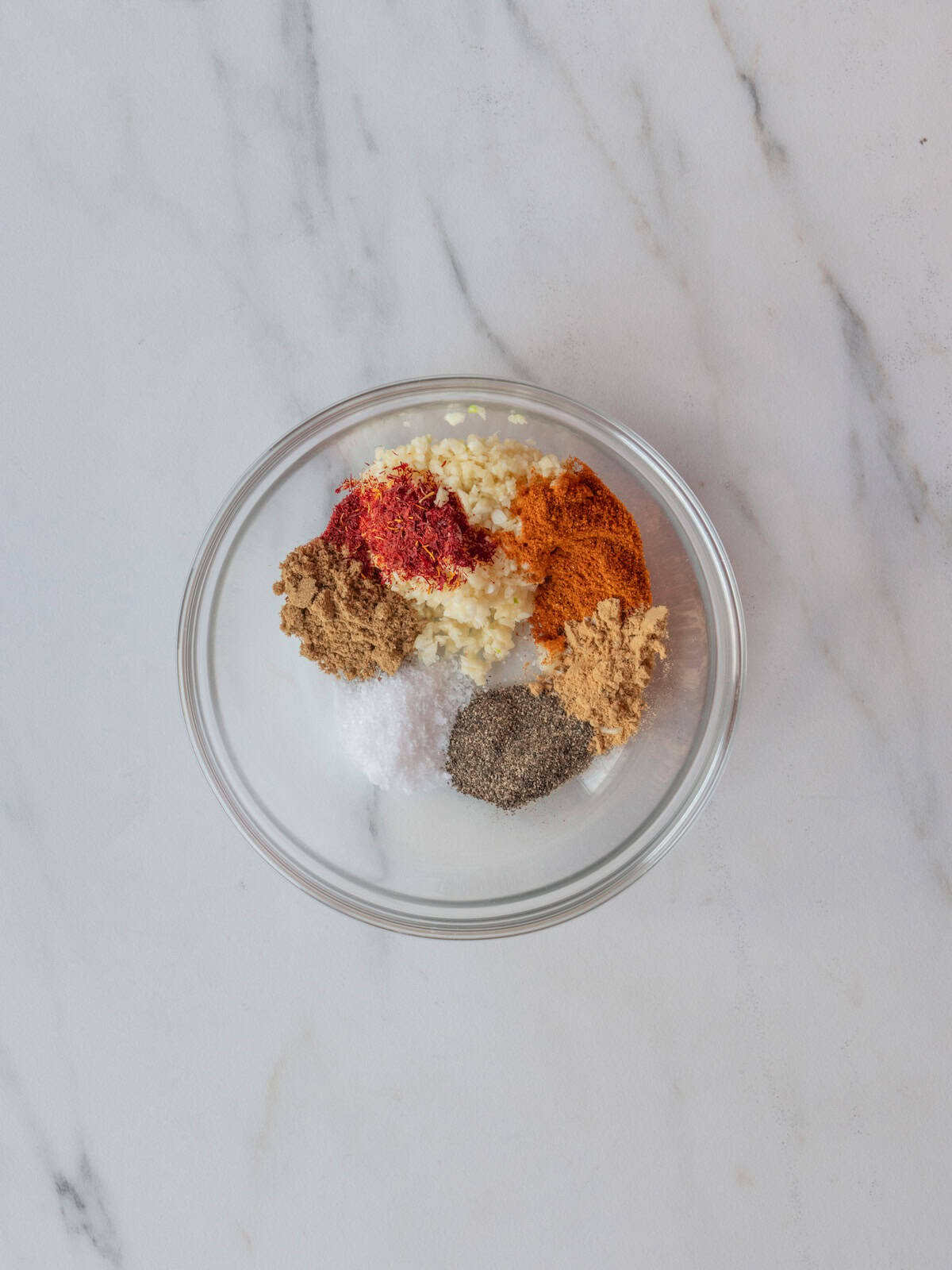 Step 1: Mix garlic, saffron, ginger, paprika, cumin and turmeric together with ยฝ teaspoon of salt and ยฝ teaspoon freshly cracked black pepper.