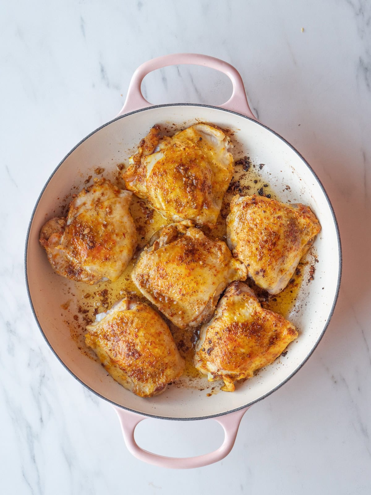 This recipe was so delicious and simple, I will definitely be adding it to the regular rotation! The only change I would make is to finish the chicken off in the oven, rather than on the stove, so that the skin stays nice and crispy. I served this over rice and the rice soaked up all the delicious sauce, yum!