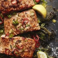 Either works beautifully here. Skin-on keeps the salmon together more easily during roasting and acts as a natural barrier on the bottom. If you prefer skinless, just be a little more careful when transferring the fillet to and from the pan.