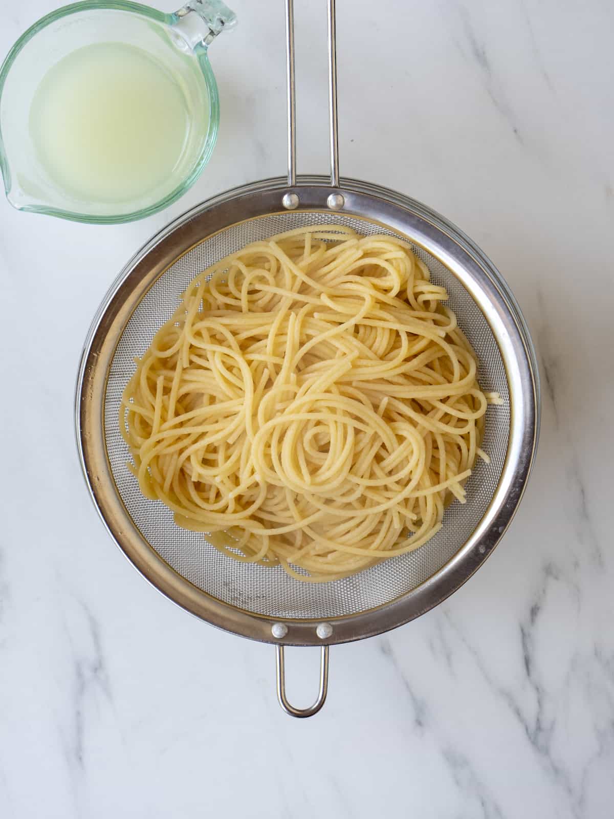 Step 2: While the butternut squash is roasting, cook the pasta until al dente. Drain, reserving ยฝ cup of the cooking liquid.