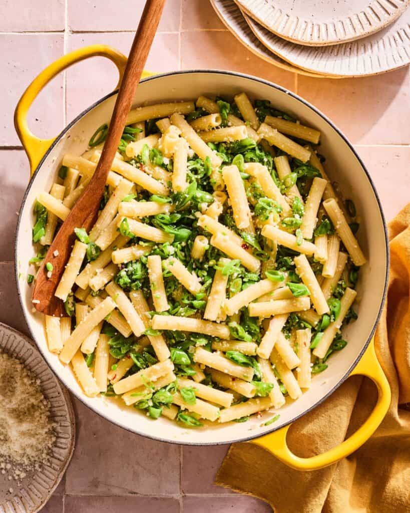 Spring Pea Pasta with Burrata - Spring Pea Pasta with Burrata is one of those recipes that you can throw together in a pinch. Itโs really just a few ingredients you probably have on hand plus fresh mint to really make it shine. The burrata is the icing on the cake and gives it this luscious and cream consistency.