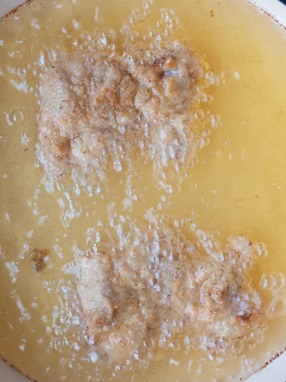- Fry for 2 minutes per side, flipping as needed, until deep golden brown and internal temperature reaches 165ยฐF (about 8-10 minutes total).