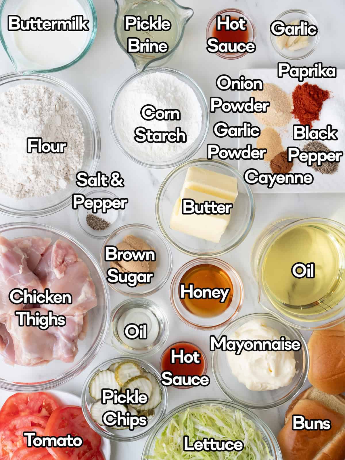Full Fried Chicken Sandwich ingredient list with measurements is in the recipe card below!