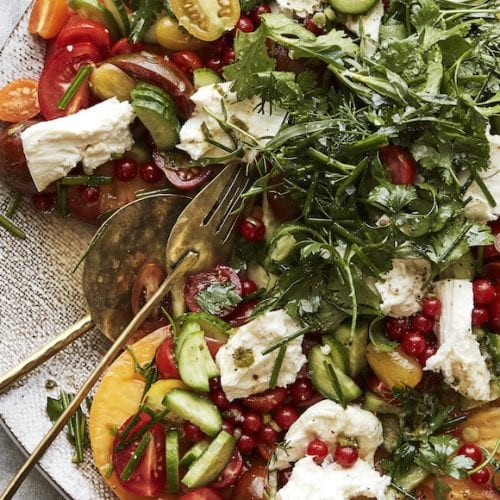 We toyed with the name of this salad for a long time at the studio when we were shooting - should we call it a Fattoush Caprese. A Fattese. A caproush? I mean, the possibilities were comical but the bottom line is, this is freaking delicious and it doesn't matter what I call it because everything should make it immediately.