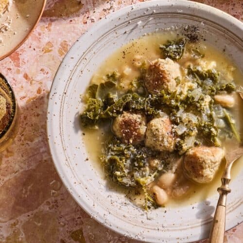 Itโs also endlessly adaptable. You can make it with whatever greens you have on hand, swap in turkey or pork for the meatballs, or even keep it vegetarian by skipping the meat and doubling up on beans. Itโs hearty enough for a chilly night, light enough for lunch, and even better the next day when all the flavors have had time to come together. This soup also pairs amazing with some easy homemade garlic bread and a winter green salad.