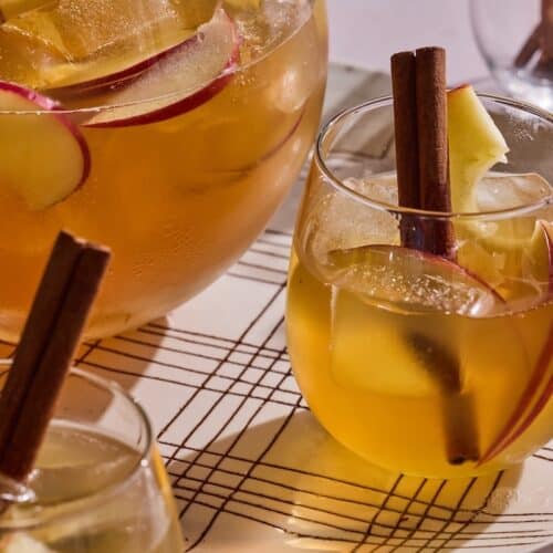 I love this Spiced Cider Punch because it feels elevated without being fussy. You warm apple cider with ginger and mulling spices to build deep flavor, then chill it so the final drink stays bright and refreshing. The bourbon adds warmth, and the Sanpellegrino Limonata Italian Soda brings just enough citrus sparkle to keep everything balanced. Spiced Cider Punch is perfect for holiday parties, Friendsgiving leftovers, or anytime you want something seasonal that still feels light and drinkable. Fits in perfectly with that Thyme Apple Cider Spritz from a few years ago if you want to do a duo!