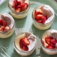 Divide the filling evenly among the prepared jars, filling each about halfway to leave room for the toppings, about ½ cup per jar.