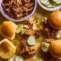Shred the pork directly in the slow cooker using two forks, or transfer to a large bowl and mix with the sauce.