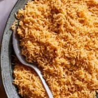 Spanish rice, which can also be called Mexican rice, is a side dish made from white rice, tomato, garlic, onion, and other aromatics that is a staple in many hispanic cultures.
