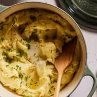 Prep Ahead Instructions: You can make these mashed potatoes a few days ahead of Thanksgiving if you're looking to make life easier for yourself. Just skip adding the chives. Then right before the big feast, warm these in a non-stick pot or pan with a little extra stock or heavy cream until warmed through. THEN add the chives and you're golden.